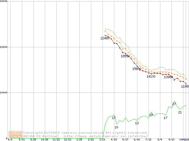 Barracuda 7200.7 (7200rpm,UltraATA/100,2MB,80GB/Platter,FDB)の最安値推移