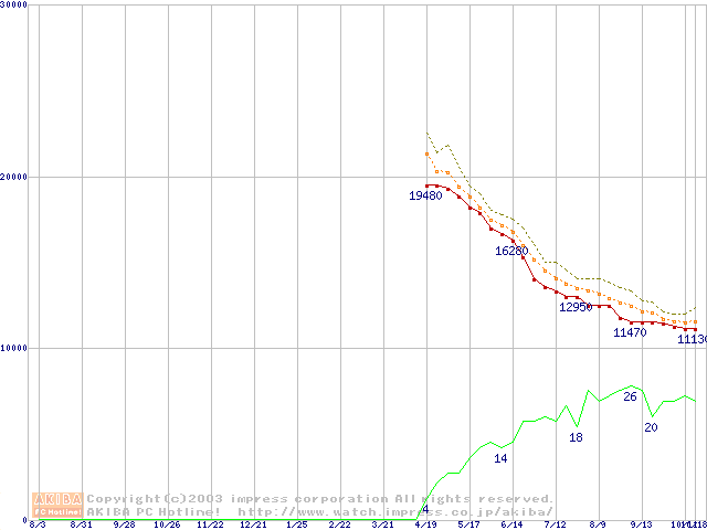 Barracuda 7200.7 (7200rpm,SerialATA,8MB,80GB/Platter,FDB)の最安値推移