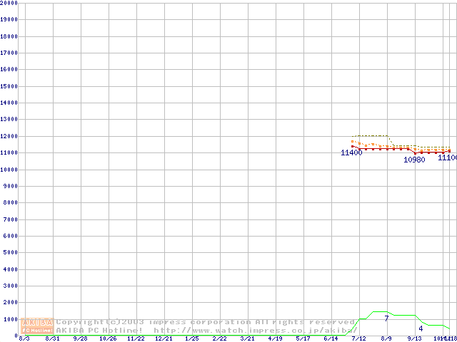 WD Caviar (7200rpm,UltraATA/133,2MB)の最安値推移