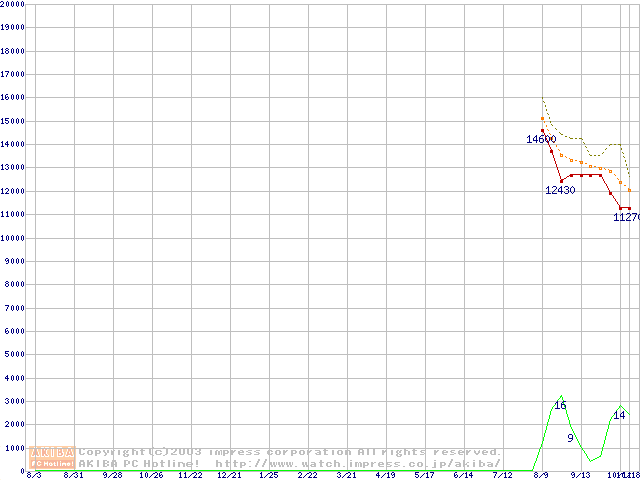 HDD主要製品(最安値1万円~1万5千円未満)の最安値推移
