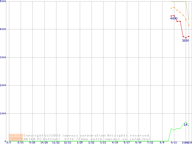 Socket A (OPGA,FSB 266MHz,L2 64KB,Applebred)の最安値推移