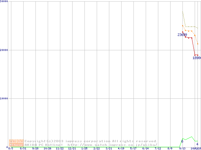 PC4300(DDR533) DDR SDRAM DIMMの最安値推移
