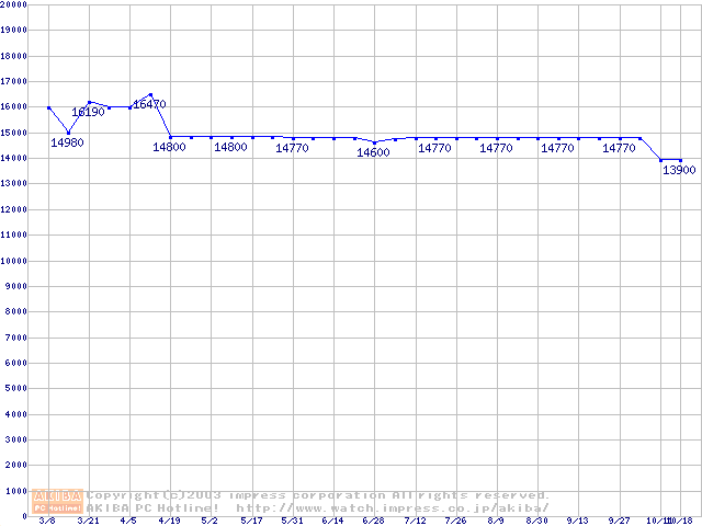 | [↑前グラフ]: | Socket A (OPGA,FSB 266MHz,L2 256KB,Thoroughbred)の最安値推移 |