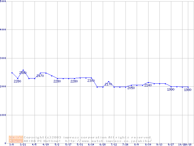 | [↑前グラフ]: | Socket A (PGA,FSB 200MHz,L2 64KB,Morgan)の最安値推移 |