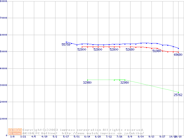 | [↓次グラフ]: | Socket A (OPGA,FSB 333MHz,L2 512KB,Barton)の最安値推移 |