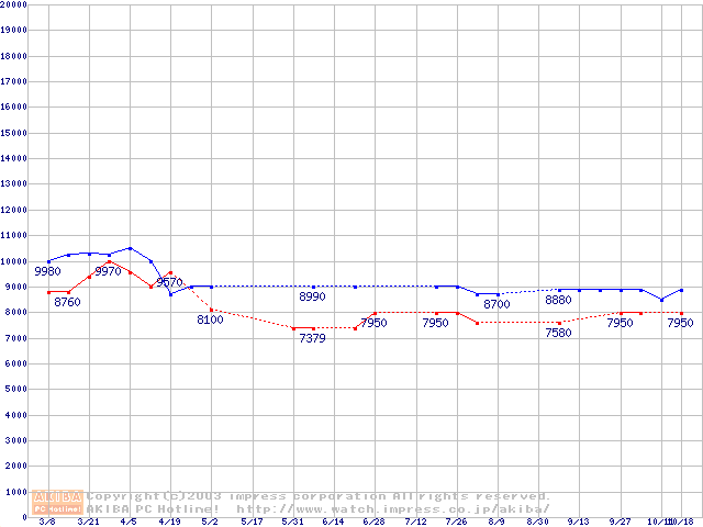 | [↑前グラフ]: | Socket A (OPGA,FSB 266MHz,L2 256KB,Thoroughbred)の最安値推移 |