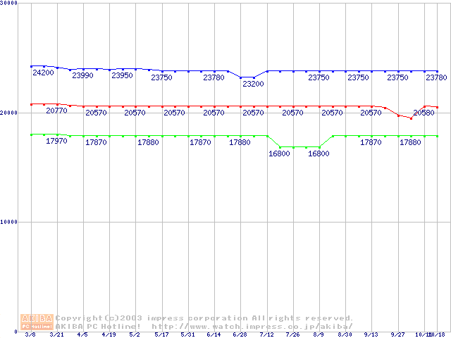 | [↓次グラフ]: | Socket 370 (FC-PGA,FSB 133MHz,L2 256KB,Coppermine)の最安値推移 |