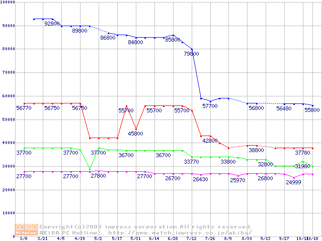 | [↓次グラフ]: | Socket 478 (micro-PGA,FSB 400MHz,L2 128KB,Northwood)の最安値推移 |