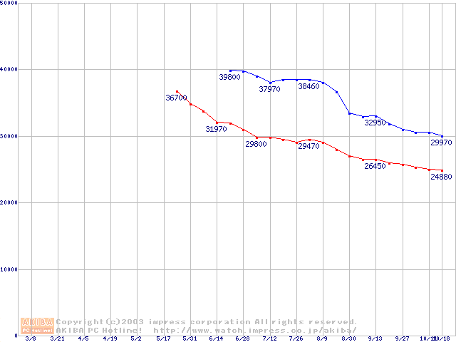 | [↑前グラフ]: | DiamondMax Plus 8 (7200rpm,2MB,UltraATA/133,FDB)の最安値推移 |