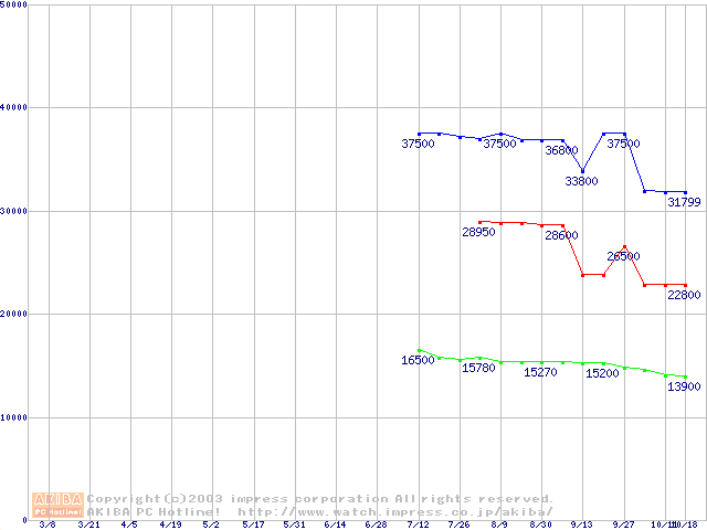 | [↓次グラフ]: | WD Caviar(Special Edition) (7200rpm,UltraATA/133,8MB)の最安値推移 |