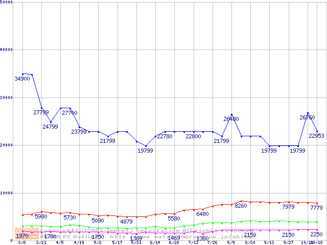 | [↑前グラフ]: | PC2700(DDR333) DDR SDRAM DIMM ECC対応 Registeredタイプの最安値推移 |