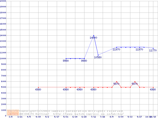 | [↓次グラフ]: | PC133 SDRAM DIMM CasLatency=3の最安値推移 |