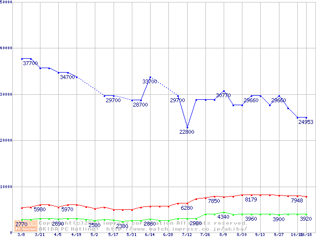 | [↑前グラフ]: | PC4300(DDR533) DDR SDRAM DIMMの最安値推移 |
