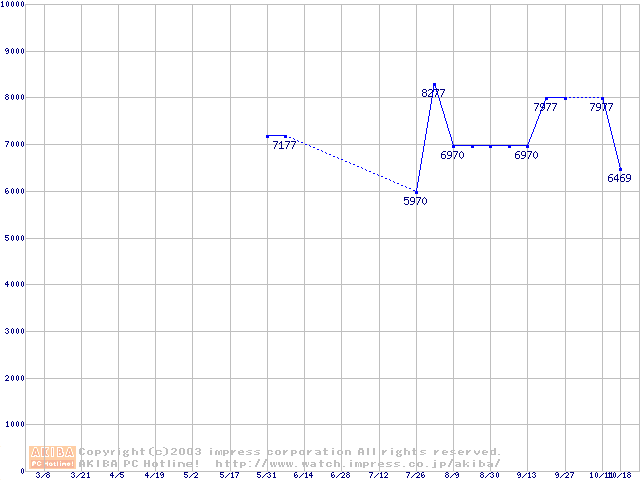 | [↓次グラフ]: | PC2700(DDR333) DDR SDRAM DIMM ECC対応 Registeredタイプの最安値推移 |