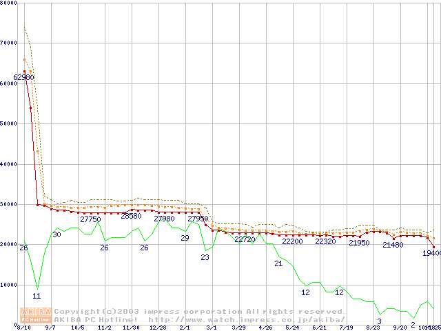 Pentium 4 2.53GHz リテールパッケージの価格推移