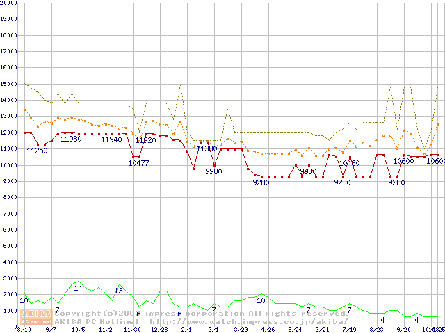 PC800-40 DRDRAM RIMM ECC対応の最安値推移