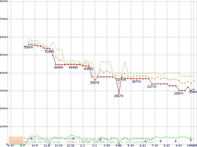 Socket 603 (micro-PGA,FSB 400MHz,L2 512KB,Prestonia)の最安値推移