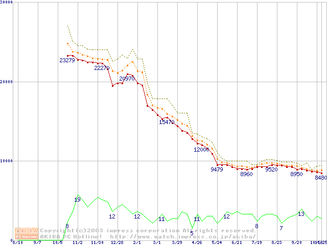 Socket A (OPGA,FSB 266MHz,L2 256KB,Thoroughbred)の最安値推移