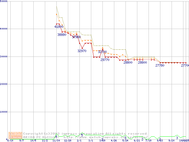 PC1066 DRDRAM RIMM4200(32bit)の最安値推移