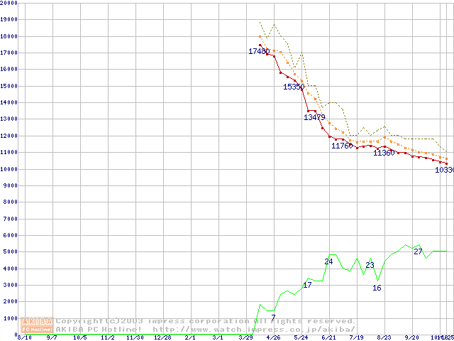 Barracuda 7200.7 (7200rpm,UltraATA/100,8MB,80GB/Platter,FDB)の最安値推移