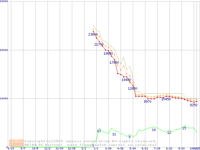 Socket A (OPGA,FSB 333MHz,L2 512KB,Barton)の最安値推移