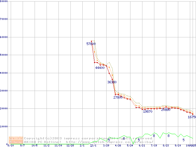 Socket A (OPGA,FSB 333MHz,L2 512KB,Barton)の最安値推移