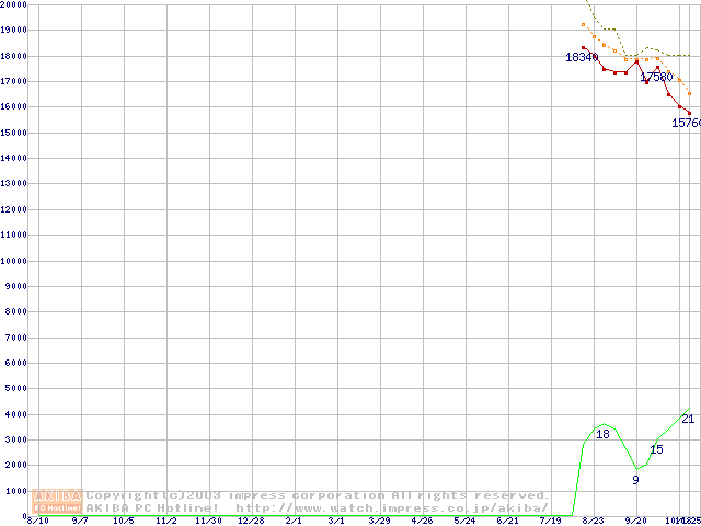 HDD主要製品(最安値1万5千円~2万円未満)の最安値推移
