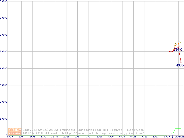 PC3200(DDR400) DDR SDRAM DIMMの最安値推移