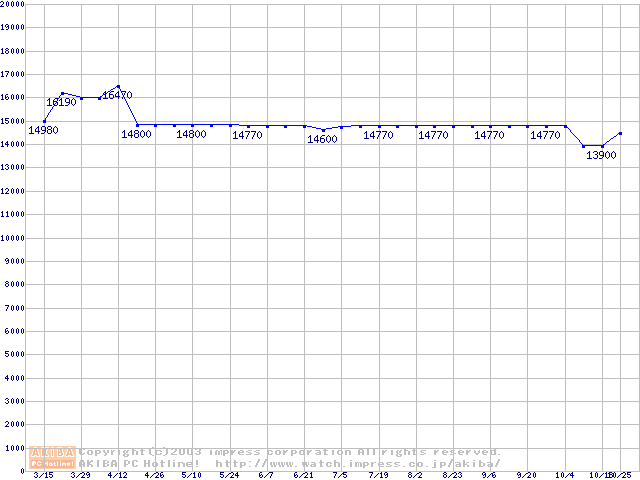 | [↑前グラフ]: | Socket A (OPGA,FSB 266MHz,L2 256KB,Thoroughbred)の最安値推移 |
