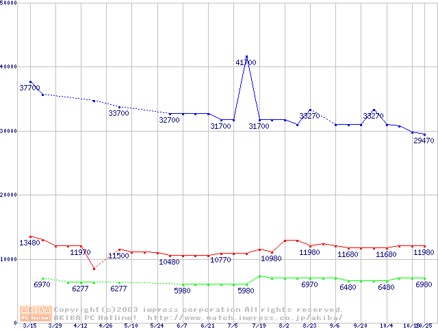 | [↑前グラフ]: | PC2700(DDR333) DDR SDRAM DIMMの最安値推移 |