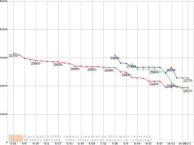 | [↓次グラフ]: | 2.5インチHDD 80GB以上(9.5mm厚)の最安値推移 |