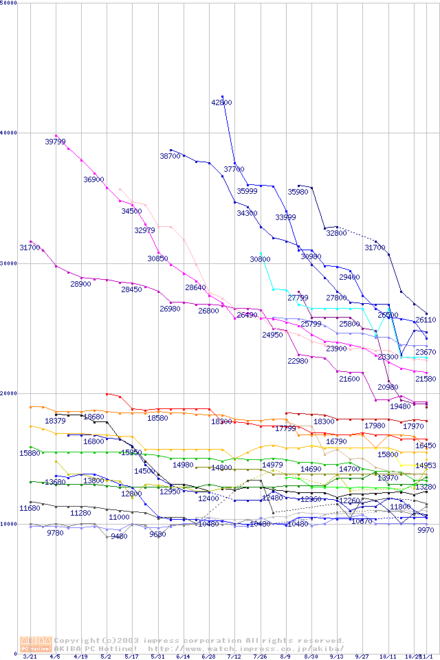 2.5インチHDD 80GB以上(9.5mm厚)の最安値推移