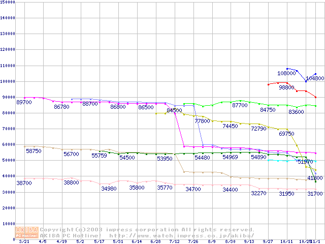 Socket A・FSB 266MHzの最安値推移