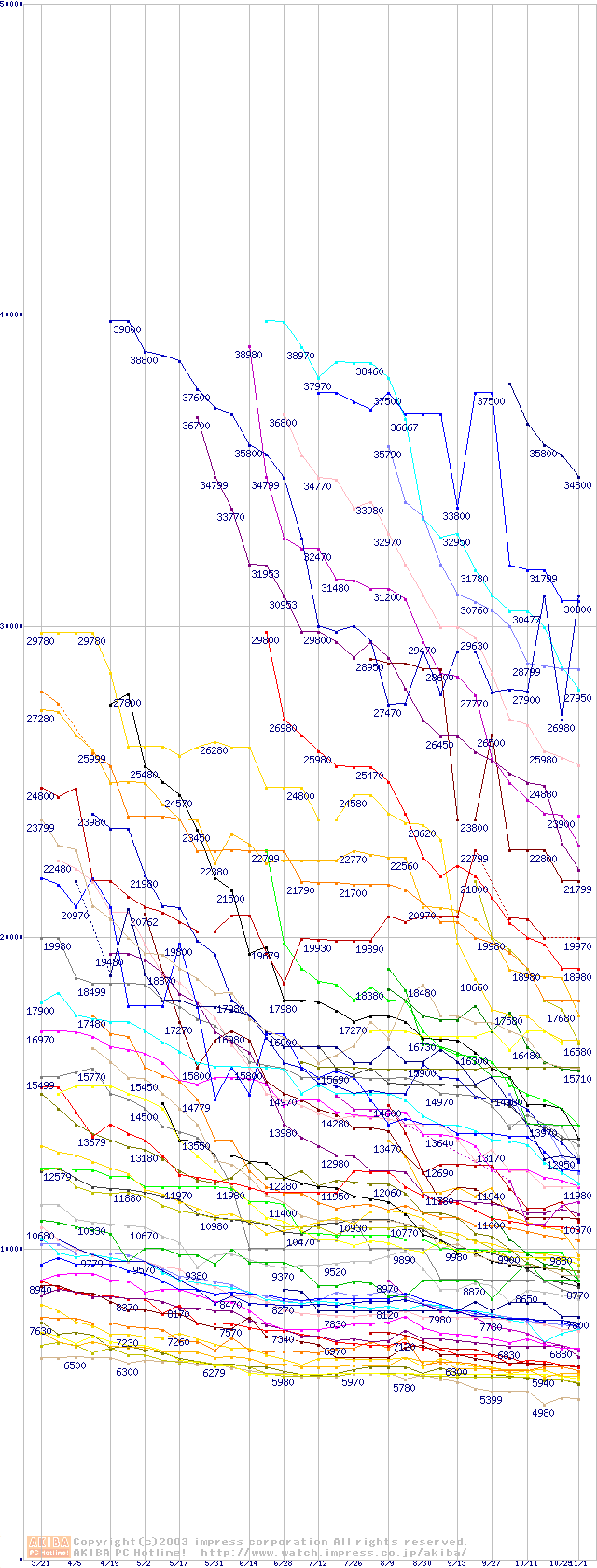 ※製品名をクリックすると個別のグラフを表示します ※点線部は販売店が確認できなかった、または調査データがないことを示します |