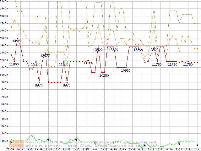 PC133 SDRAM DIMM CasLatency=3 ECC対応 Registeredタイプの最安値推移