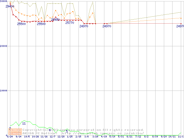 Socket 603 (micro-PGA,FSB 400MHz,L2 512KB,Prestonia)の最安値推移