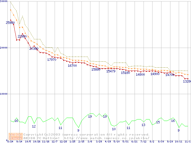 Travelstar 40GNX IC25N040ATCS05 (40GB)の価格推移