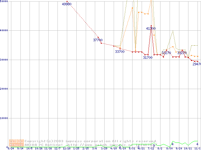 PC2700(DDR333) DDR SDRAM DIMM ECC対応 Registeredタイプの最安値推移
