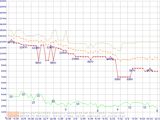 PC1066 DRDRAM RIMM4200(32bit)の最安値推移