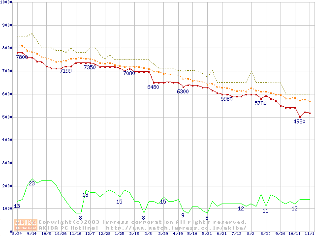 HDD主要製品の最安値推移