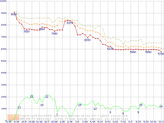 DiamondMax Plus 8 (7200rpm,2MB,UltraATA/133,FDB)の最安値推移