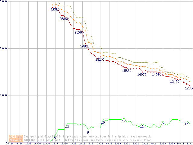 DiamondMax Plus 9 (7200rpm,2MB,UltraATA/133,FDB)の最安値推移