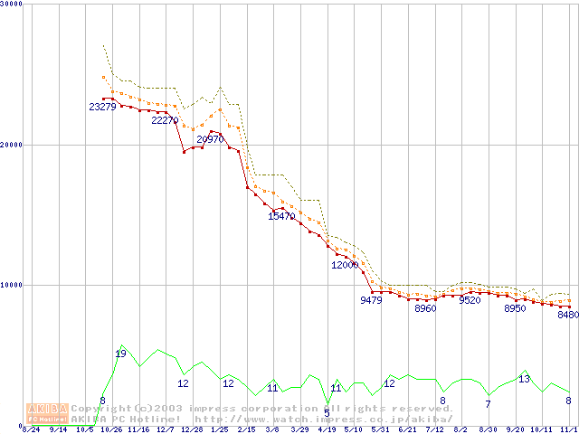 Socket A (OPGA,FSB 266MHz,L2 256KB,Thoroughbred)の最安値推移