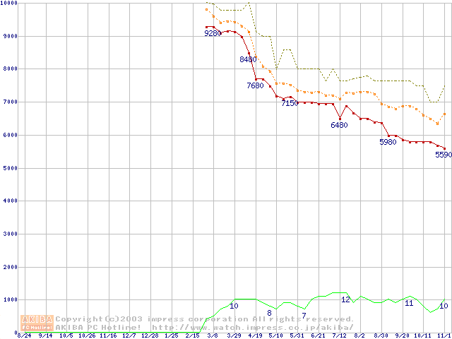 | Athlon XP 2000+ (1.67GHz) バルク(Thoroughbred)の価格推移 |