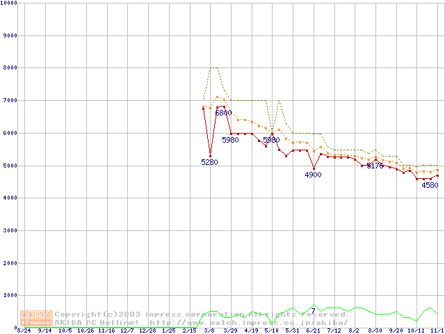 C3 1.0A GHz (Nehemiah) リテールパッケージの価格推移