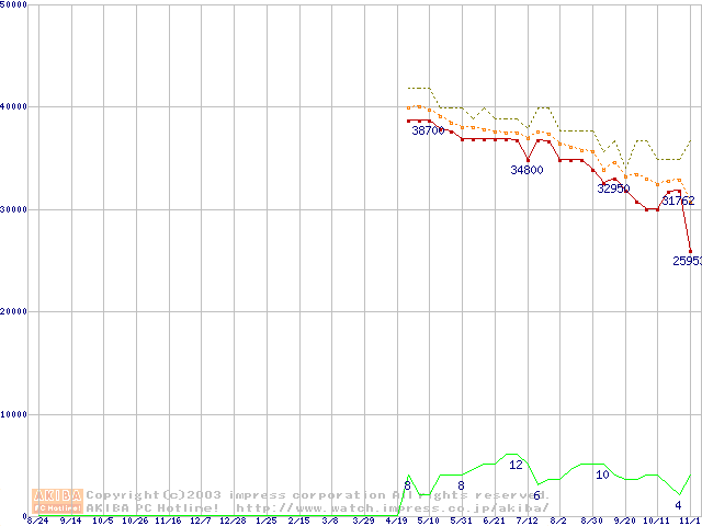 Opteron 240(1.4GHz) リテールパッケージの価格推移