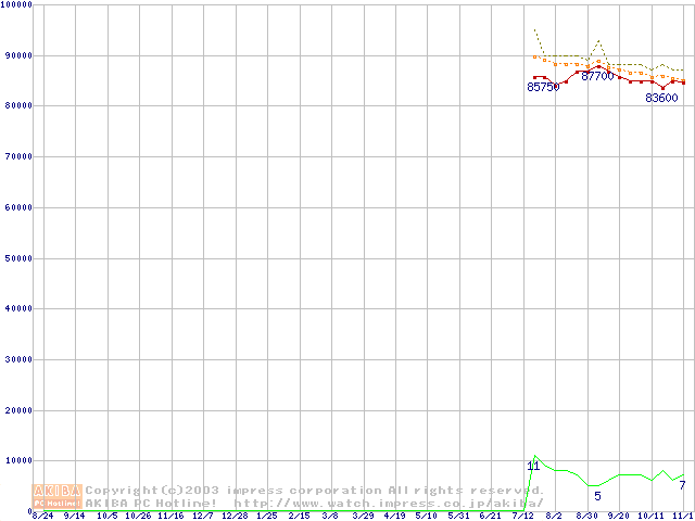 Socket 604 (micro-PGA,FSB 533MHz,L2 512KB,Prestonia)の最安値推移