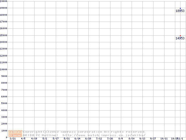 | [↑前グラフ]: | MKシリーズ (9.5mm,4200rpm,2MB,FDB,20GB/Platter)の最安値推移 |