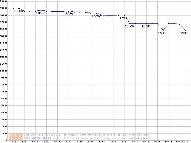 | [↑前グラフ]: | MKシリーズ (9.5mm,4200rpm,8MB,FDB,40GB/Platter)の最安値推移 |