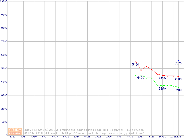 | [↓次グラフ]: | Socket A (PGA,FSB 200MHz,L2 64KB,Morgan)の最安値推移 |